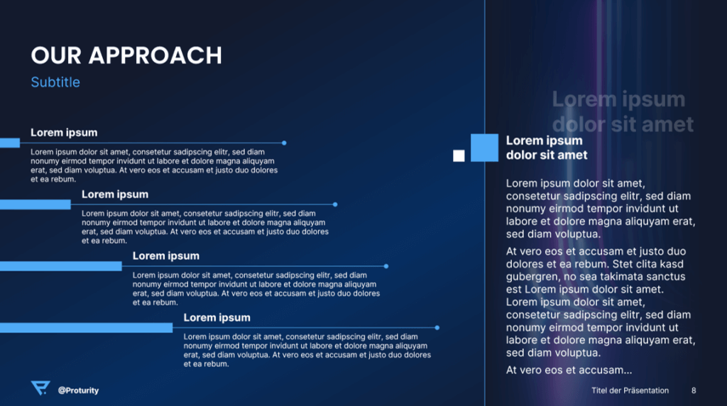 Egal ob Sie eine klassische Unternehmenspräsentation, eine Produktpräsentation, ein Pitch Deck oder einen Folienmaster benötigen – unsere PowerPoint Grafiker sind echte Profis und verleihen Ihren Präsentationen einen ganz neuen Glanz.