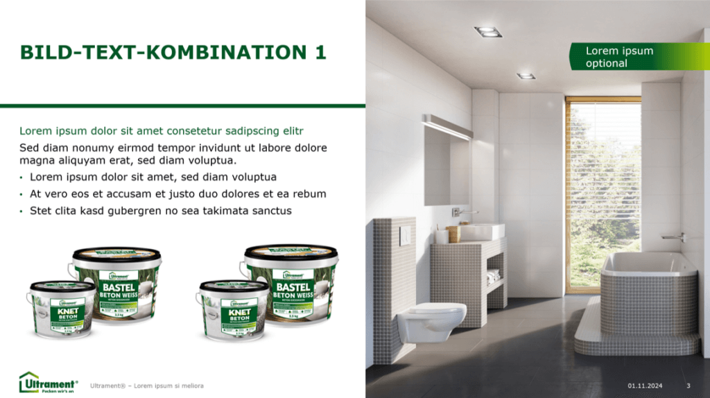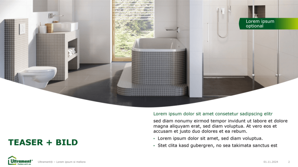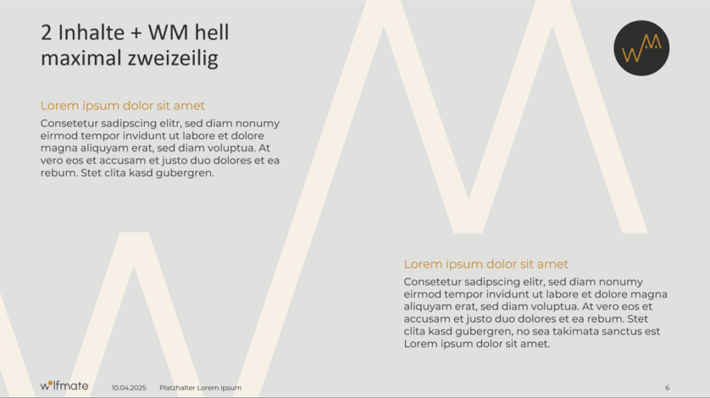 Gestaltung eines neuen Präsentationslayouts im 16:9-Format mit Fokus auf visuelle Qualität. Das Design orientiert sich am neuen Corporate Design und überträgt die visuelle Sprache der Website in ein klares, professionelles Folienset.