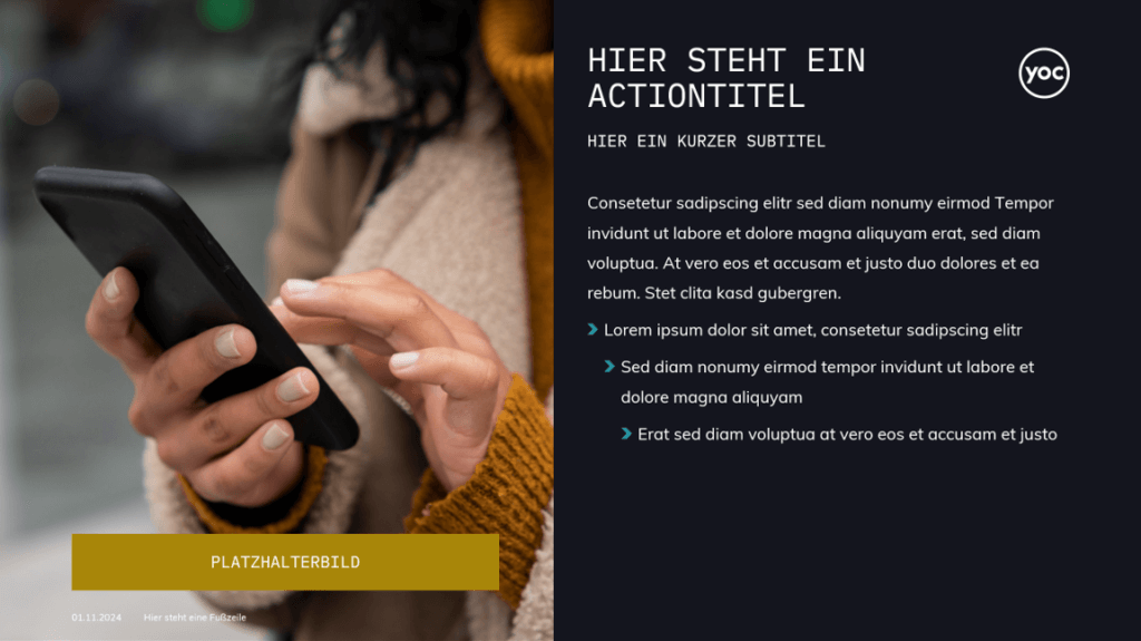 PPT-Template-Erstellung inklusive Masterdesign zur konsistenten Marken-präsentation. Konzipiert wurde ein flexibler Foliensatz, der eine hochwertige Darstellung von Inhalten ermöglicht und den Gestaltungsaufwand im Alltag reduziert.