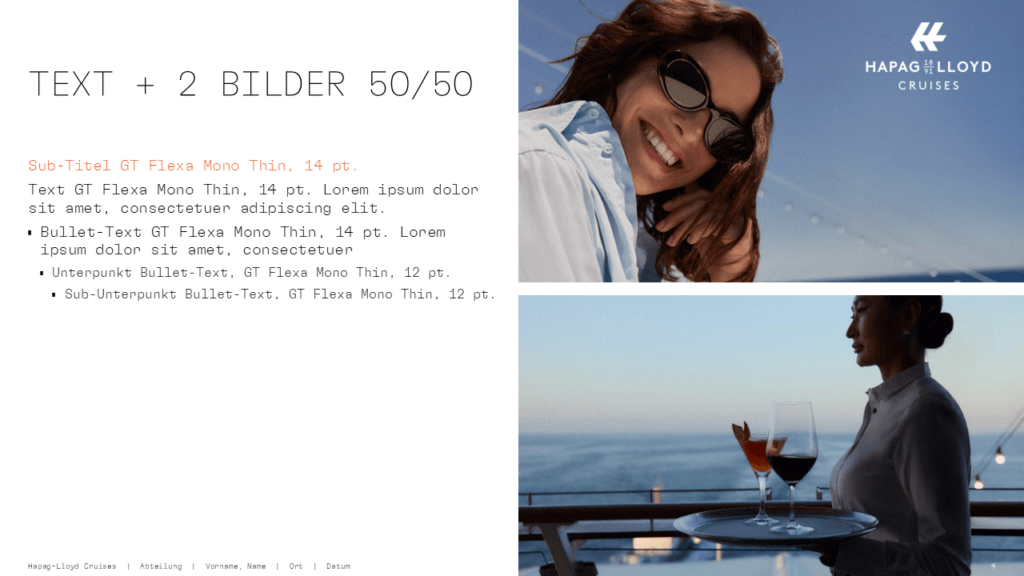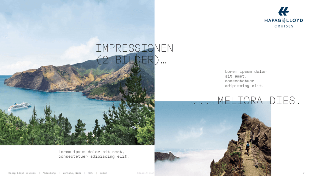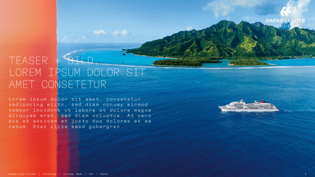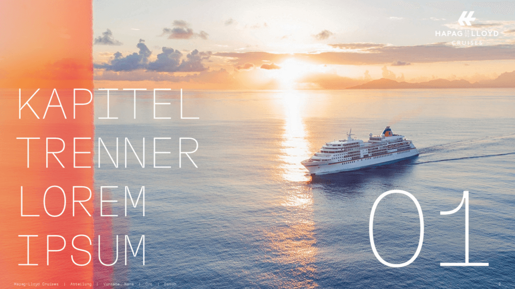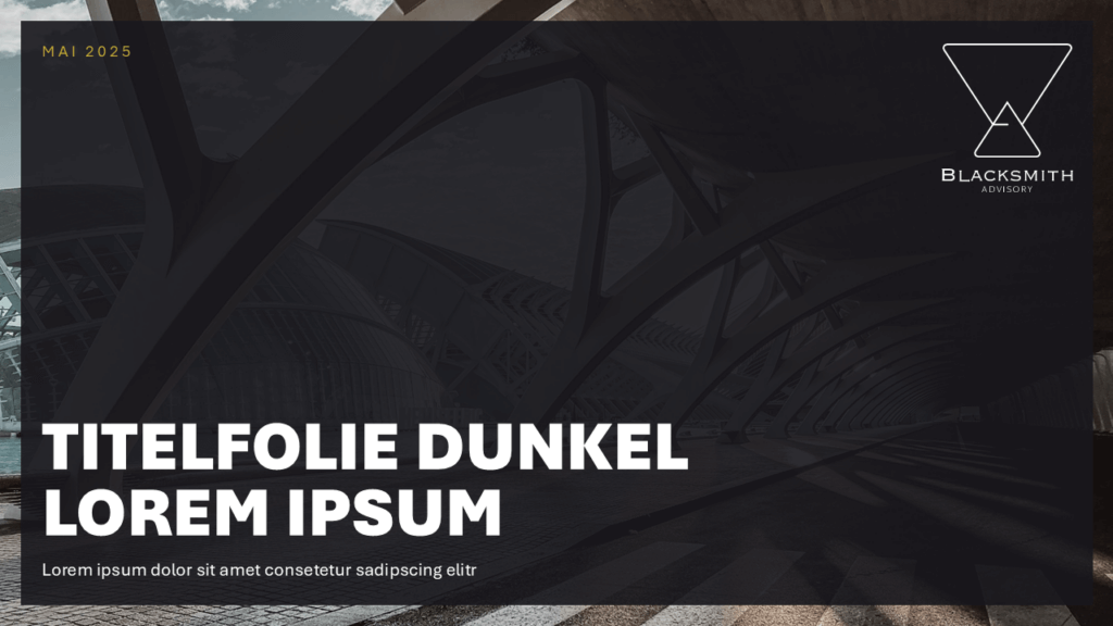 Gestaltung eines neuen Präsentationslayouts im 16:9-Format mit Fokus auf visuelle Qualität. Das Design orientiert sich am neuen Corporate Design und überträgt die visuelle Sprache der Website in ein klares, professionelles Folienset.