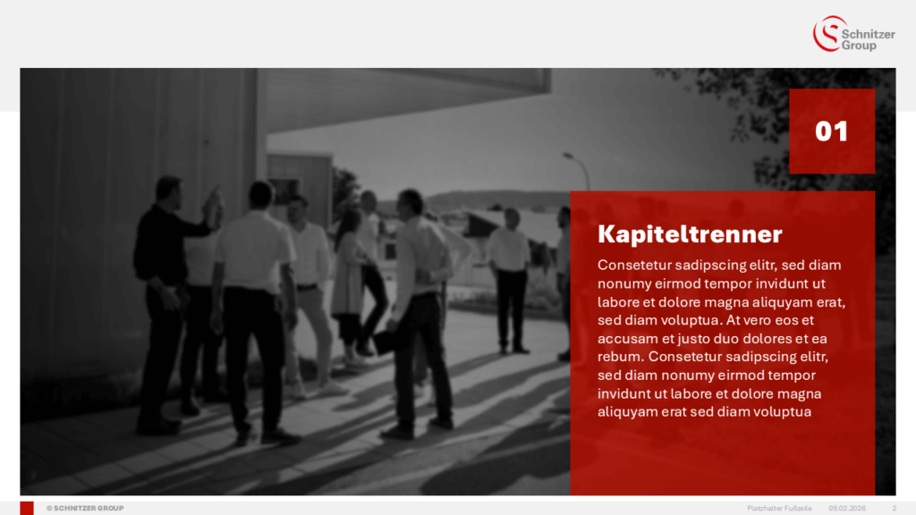 Somit sparen Sie nicht nur kostbare Zeit, sondern erhalten ein technisch einwandfreies und benutzerfreundliches Folien-Template nach Ihren Corporate Design Vorgaben in einem modernen Look & Feel, der Ihnen den täglichen Präsentationsalltag mit PowerPoint erleichtern wird.