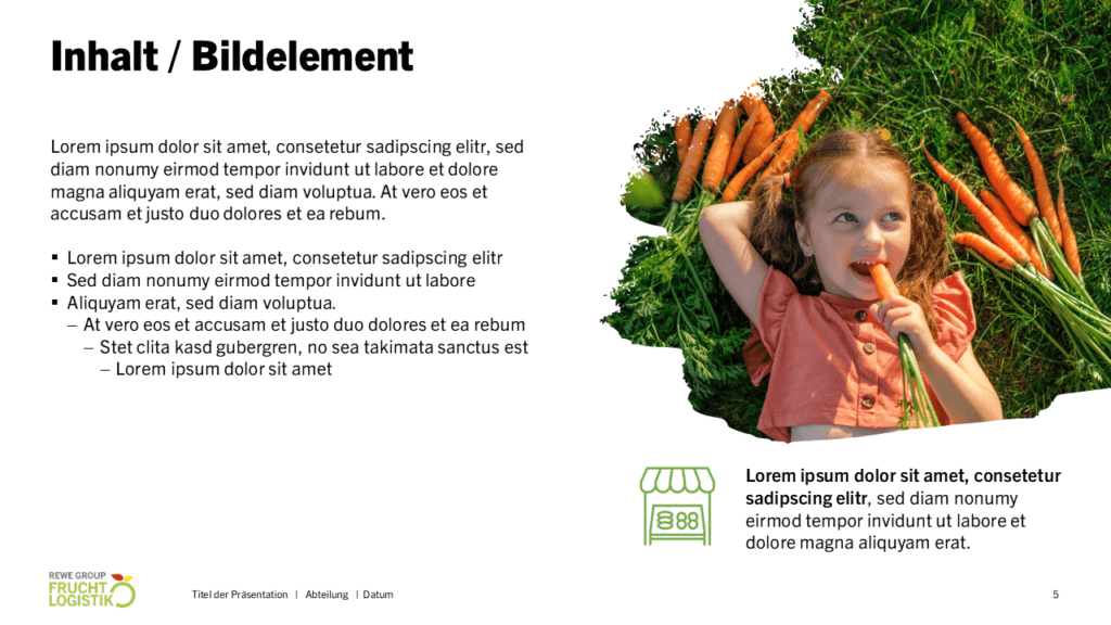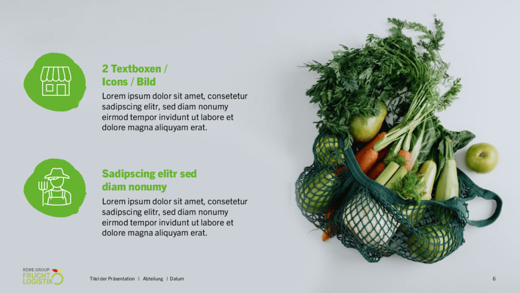 Ziel: Visuell ansprechende Informations- darstellung und Layout-Aufbau des gelieferten Inputs im neu erstellten Folienmaster.