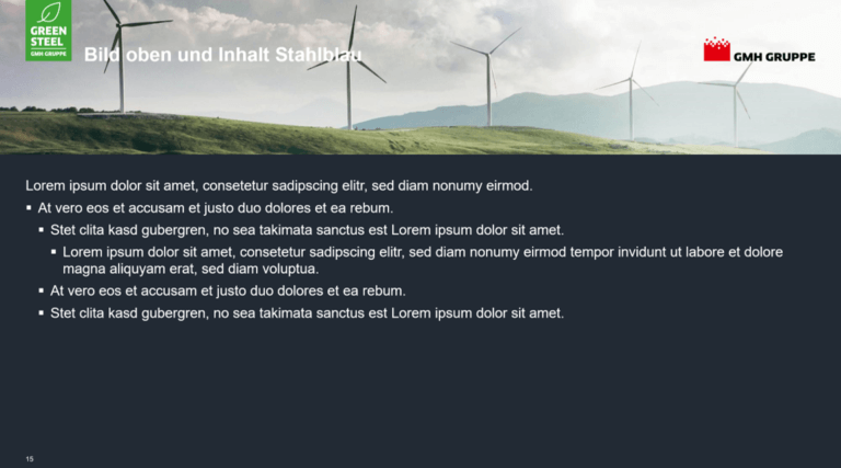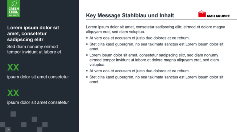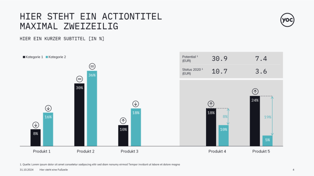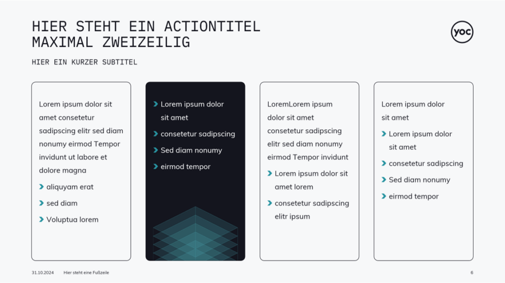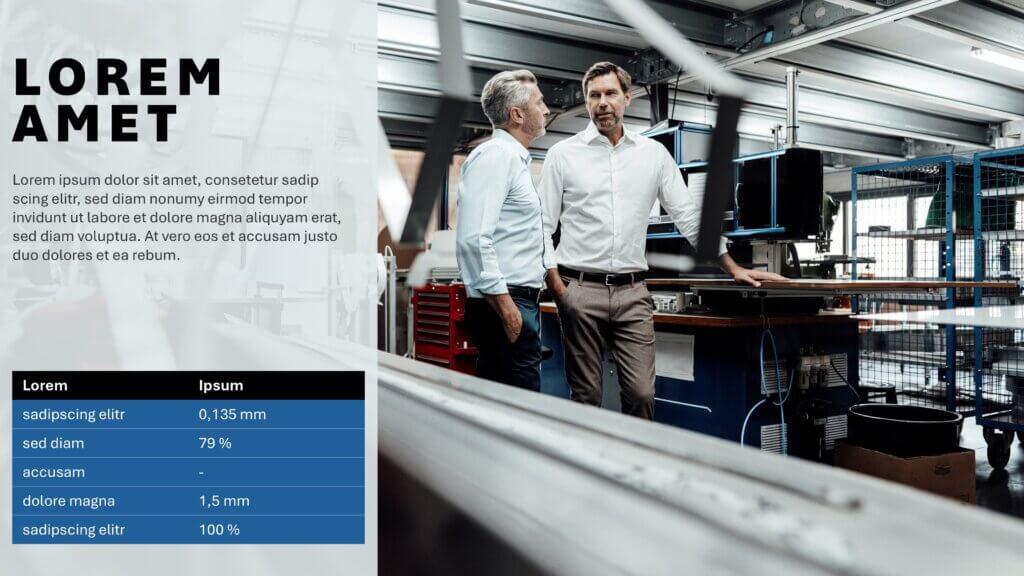 Vom Titel bis zum Untertitel, inklusive Logos, Grafiken und Bild-Bausteinen, wir bauen Ihnen ein einheitliches Mastertemplate in bester Qualität.